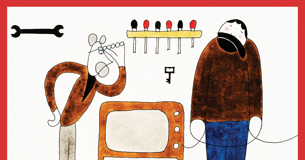 Hogyan készít Sróf mester a talicskából TV-t, és a TV-ből talicskát? Vajon meddig tart Berzsián elhatározása, hogy nem néz TV-t? Réber László fantasztikus rajzai kiemelik a történet fanyar humorát.