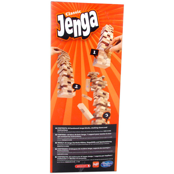 Klasszikus építkező társasjáték az egész családnak! A Jenga Classic társasjáték lényege, hogy a fahasábokból álló toronyra újabb és újabb szinteket építs úgy, hogy az alulról kihúzott hasábokat egyre feljebb helyezd! Feszült figyelem és végtelen nyugalom szükséges, mert ha kicsit is megremeg a kezed, összedől az építmény. A győztes minden esetben az lesz, aki az utolsó hasábot sikeresen feltette a torony tetejére, mielőtt az leborulna.